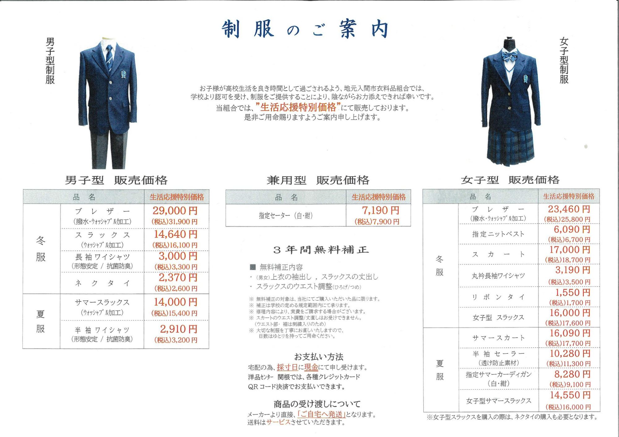入間向陽高等学校 制服採寸・販売のご案内